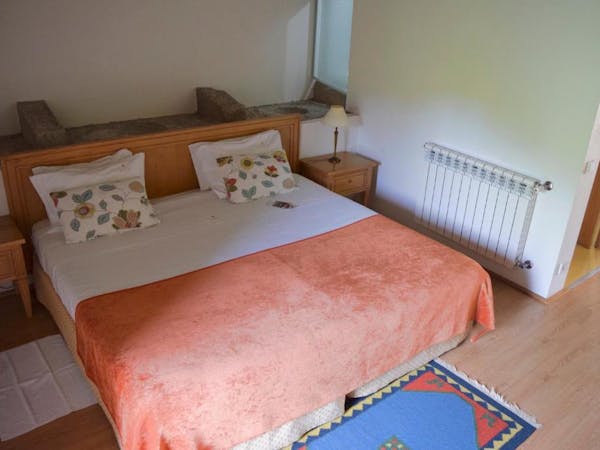 The ground floor offers a common room with heating and television, dining table and chairs and a completely equipped kitchen. It also offers an small patio (with table and chairs) with direct access to the swimming pool. It has central heating.
